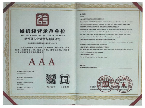 诚信经营示范单位